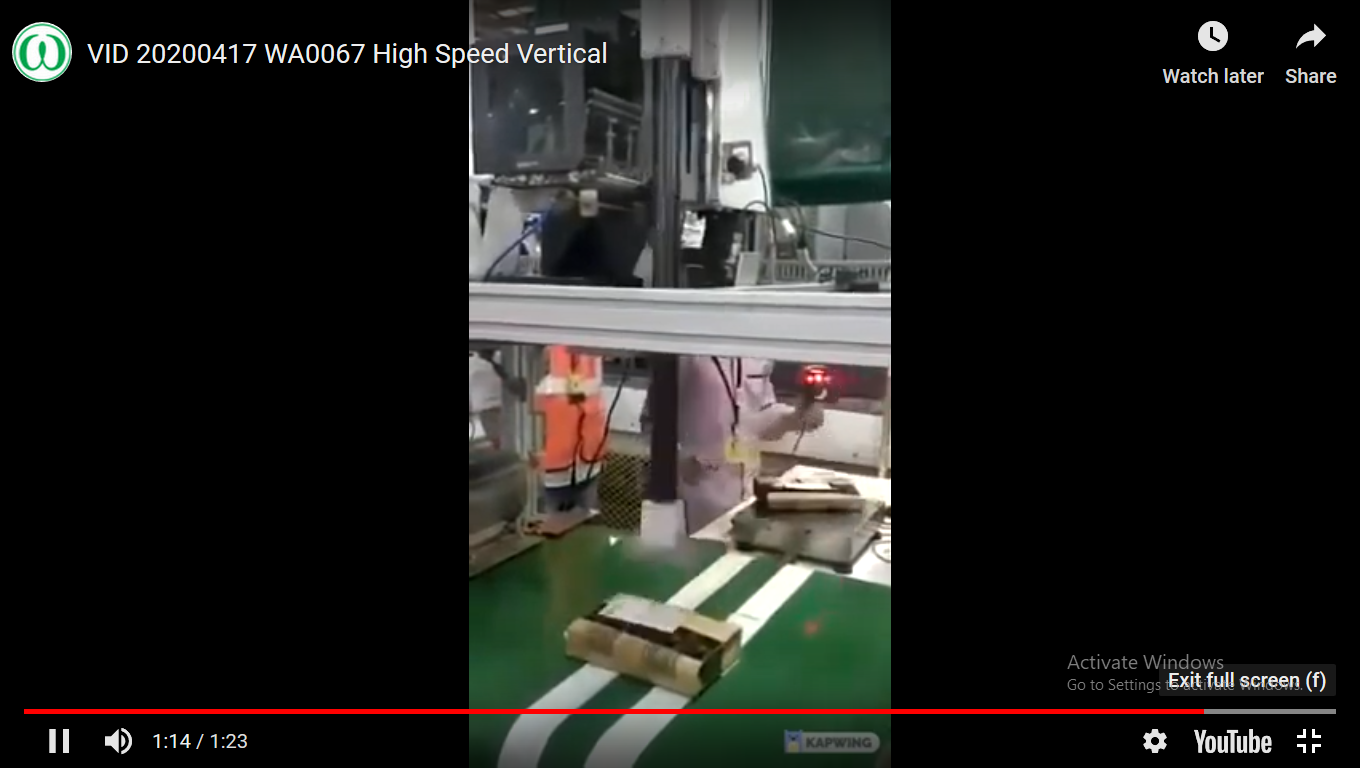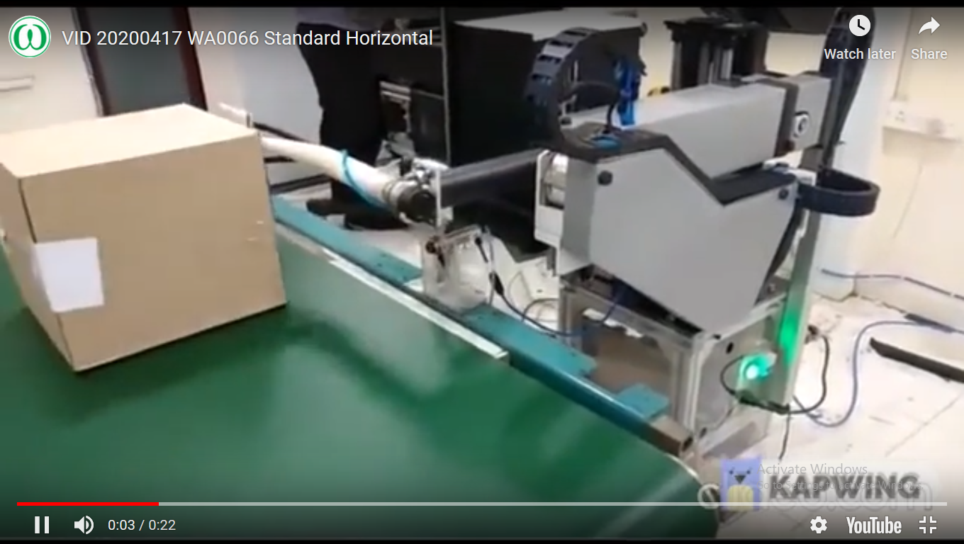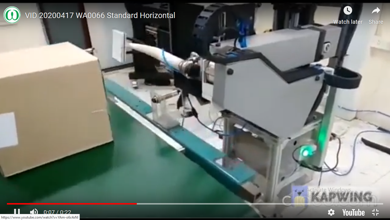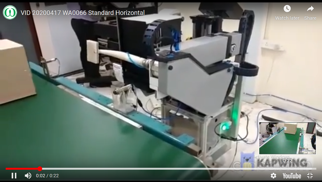 This is a high speed vertical stamping of labeling machine. At a speed of 20 labels per min it can automatically adjust for carton height (from 5 mm to 540 mm) for labeling facilitating labeling of cartons of different size in same packing channel.
